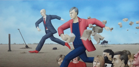 Zomertentoonstelling St. Stevenskerk Nijmegen van 17 juli t/m 21 augustus Drieluik Het leven, de dood en andere tijdelijke ongemakken – L 90x150cm – M 150x90cm – R 90x150cm – 2016